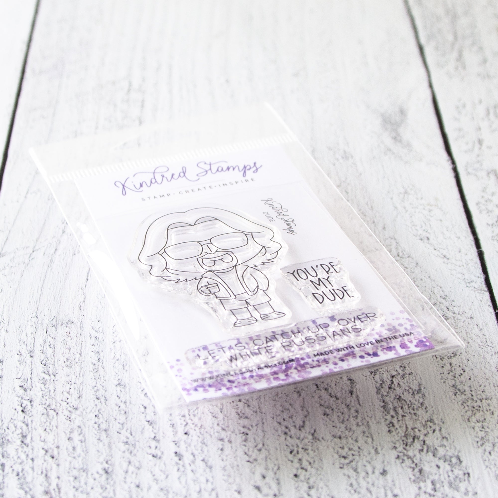 Dude is a 2x3 inch clear photopolymer stamp set made in the USA.